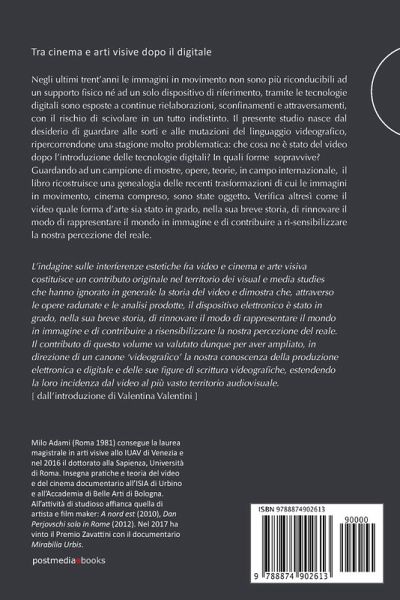Negli ultimi trent'anni le immagini in movimento non sono più riconducibili ad un supporto fisico né ad un solo dispositivo di riferimento, tramite le tecnologie digitali sono esposte a continue rielaborazioni, sconfinamenti e attraversamenti, con il rischio di scivolare in un tutto indistinto. Questa ricerca nasce dal desiderio di guardare alle mutazioni del linguaggio videografico: che cosa ne è stato del video dopo l'introduzione delle tecnologie digitali? In quali forme sopravvive? Guardando ad un campione di mostre, opere, teorie, in campo internazionale, il libro ricostruisce una genealogia delle recenti trasformazioni di cui le immagini in movimento, cinema compreso, sono state oggetto. ¿L'indagine sulle interferenze estetiche fra video e cinema e arte visiva costituisce un contributo originale nel territorio dei visual e media studies che hanno ignorato in generale la storia del video e dimostra che, attraverso le opere radunate e le analisi prodotte, il dispositivo elettronico è stato in grado, nella sua breve storia, di rinnovare il modo di rappresentare il mondo in immagine e di contribuire a risensibilizzare la nostra percezione del reale¿. (dalla prefazione di Valentina Valentini) Das Urheberrecht an bibliographischen und produktbeschreibenden Daten und an den bereitgestellten Bildern liegt bei Informazioni Editoriali, I.E. S.r.l., oder beim Herausgeber oder demjenigen, der die Genehmigung erteilt hat. Alle Rechte vorbehalten.