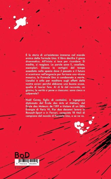 È la storia di un'esistenza immersa nel mondo eroico della Formula Uno. Il libro decifra il gioco drammatico. All'inizio si tace per ricordare. Si medita, si reagisce. Le parole sono lì, cesellate, esemplari. Dicono le vertigini del tempo asseditato nello spazio dove il passato e il futuro si scontrano nell'angoscia per formare uno strano mosaico, la Formula Uno è condannata a morte. L'analisi è utile per meditare sugli effetti delle nostre azioni perché abbiamo una buona scusa, quella di lasciar fare. Al di là del racconto, un giorno, la verità si pone a ciascuno: sono cieco o colpevole?