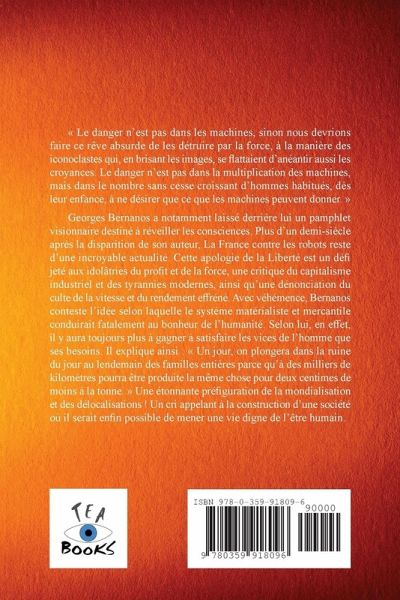 Le danger n'est pas dans les machines, sinon nous devrions faire ce rêve absurde de les détruire par la force, à la manière des iconoclastes qui, en brisant les images, se flattaient d'anéantir aussi les croyances. Le danger n'est pas dans la multiplication des machines, mais dans le nombre sans cesse croissant d'hommes habitués, dès leur enfance, à ne désirer que ce que les machines peuvent donner. Georges Bernanos a notamment laissé derrière lui un pamphlet visionnaire destiné à réveiller les consciences. Plus d'un demi-siècle après la disparition de son auteur, La France contre les robots reste d'une incroyable actualité. Cette apologie de la Liberté est un défi jeté aux idolâtries du profit et de la force, une critique du capitalisme industriel et des tyrannies modernes, ainsi qu'une dénonciation du culte de la vitesse et du rendement effréné. Avec véhémence, Bernanos conteste l'idée selon laquelle le système matérialiste et mercantile conduirait fatalement au bonheur de l'humanité.