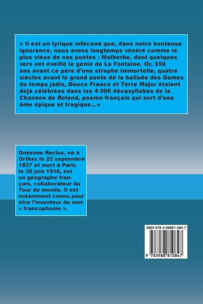 Il est un lyrique infécond que, dans notre honteuse ignorance, nous avons longtemps vénéré comme le plus vieux de nos poètes : Malherbe, dont quelques vers ont éveillé le génie de La Fontaine. Or, 550 ans avant ce père d'une strophe immortelle, quatre siècles avant le grand poète de la ballade des Dames du temps jadis, Douce France et Terre Major étaient déjà célébrées dans les 4 000 décasyllabes de la Chanson de Roland, poème français qui sort d'une âme épique et tragique...