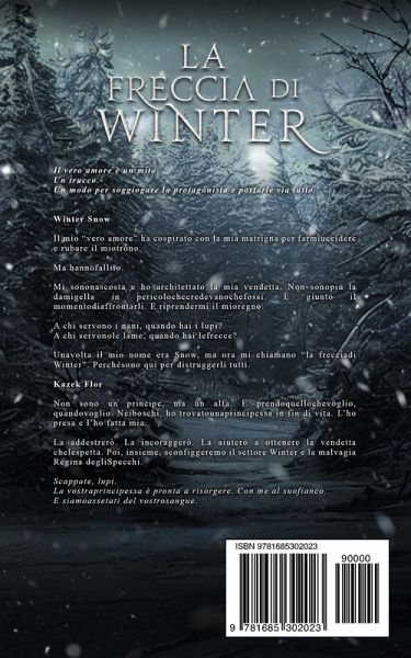 Il vero amore è un mito Un trucco. Un modo per soggiogare la protagonista e portarle via tutto. Winter Snow Il mio "vero amore" ha cospirato con la mia matrigna per farmi uccidere e rubare il mio trono. >Mi sono nascosta e ho architettato la mia vendetta. Non sono più la damigella in pericolo che credevano che fossi. È giunto il momento di affrontarli. E riprendermi il mio regno. A chi servono i nani, quando hai i lupi? >Una volta il mio nome era Snow, ma ora mi chiamano "la freccia di Winter". Perché sono qui per distruggerli tutti. Kazek Flor >La addestrerò. La incoraggerò. La aiuterò a ottenere la vendetta che le spetta. Poi, insieme, sconfiggeremo il settore Winter e la malvagia Regina degli Specchi. Scappate, lupi. La vostra principessa è pronta a risorgere. Con me al suo fianco. E siamo assetati del vostro sangue. Nota dell'Autrice: Questa storia è una rivisitazione della fiaba di Biancaneve, basata sull'universo Omegaverse in cui è ambientata la serie X-Clan.