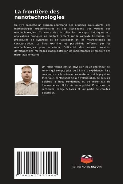 Ce livre présente un examen approfondi des principes sous-jacents, des méthodologies expérimentales et des applications très variées des nanotechnologies. Ce cours vise à relier les concepts théoriques aux applications pratiques en mettant l'accent sur le contexte historique, les procédures de synthèse et de fabrication et les méthodologies de caractérisation. Le livre examine les possibilités offertes par les nanotechnologies pour améliorer l'efficacité des cellules solaires, développer des méthodes d'administration de médicaments et produire des matériaux innovants.