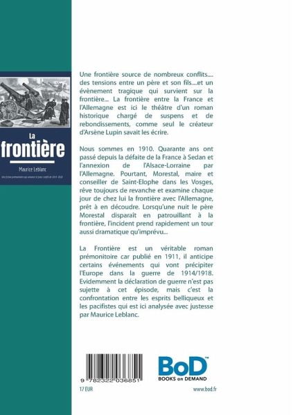 Une frontière source de nombreux conflits....des tensions entre un père et son fils....et un évènement tragique qui survient sur la frontière... La frontière entre la France et l'Allemagne est ici le théâtre d'un roman historique chargé de suspens et de rebondissements, comme seul le créateur d'Arsène Lupin savait les écrire.