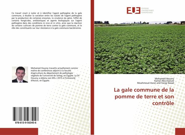 Ce travail visait à isoler et à identifier l'agent pathogène de la gale commune, à étudier la variation entre les isolats de l'agent pathogène par la production de certaines enzymes, la virulence du gène, l'effet de certains fongicides, antibiotiques et agents biologiques sur l'agent pathogène dans des conditions in vivo et in vitro, ainsi que la réaction de certains cultivars de pomme de terre contre la gale commune, et le rôle des constituants sur leur résistance à la gale commune bactérienne.