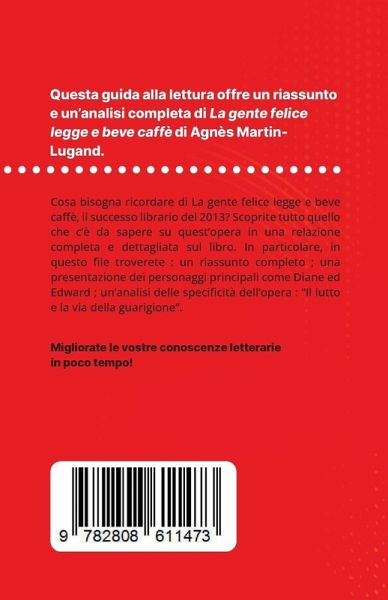 Cosa bisogna ricordare di La gente felice legge e beve caffè, il successo librario del 2013? Scoprite tutto quello che c'è da sapere su quest'opera in una relazione completa e dettagliata sul libro. In particolare, in questo file troverete : - Un riassunto completo - Una presentazione dei personaggi principali come Diane ed Edward - Un'analisi delle specificità dell'opera: Il lutto e la via della guarigione Un'analisi di riferimento per comprendere rapidamente il significato dell'opera.