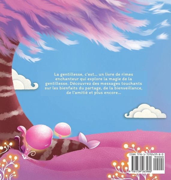 Vous souhaitez enseigner aux enfants l'importance de la gentillesse ? Ce livre aux rimes amusantes encouragera les enfants à être plus gentils, page après page. Les enfants apprécieront les illustrations enchanteresses et les messages significatifs, tels que: La gentillesse, c'est...Transformer les mots cruels en sourires éternels. Pas besoin de clown ni de magie pour se réjouir... le meilleur remède, c'est bien le rire! L'histoire aborde la question de la gentillesse envers les amis, les animaux, la planète et, surtout, envers soi-même. Adapté aux enfants de 2 à 6 ans. Une excellente ressource pour : Toute la famille Les crèches Les écoles Les écoliers à domicile Les enseignants et les éducateurs Ce livre est parfait pour aider les enfants à devenir des êtres humains plus empathiques et plus consciencieux, tout en s'amusant !