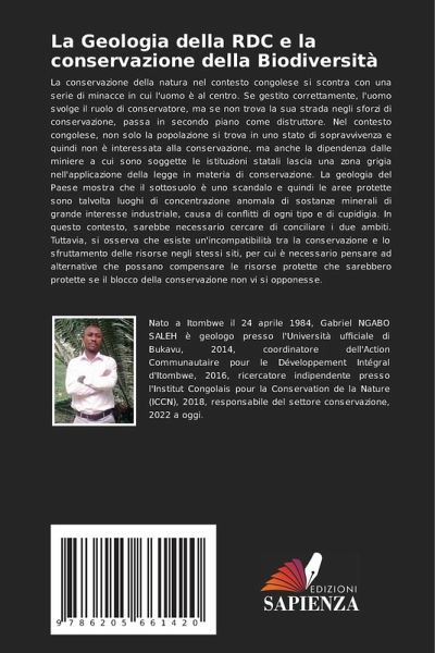 La conservazione della natura nel contesto congolese si scontra con una serie di minacce in cui l'uomo è al centro. Se gestito correttamente, l'uomo svolge il ruolo di conservatore, ma se non trova la sua strada negli sforzi di conservazione, passa in secondo piano come distruttore. Nel contesto congolese, non solo la popolazione si trova in uno stato di sopravvivenza e quindi non è interessata alla conservazione, ma anche la dipendenza dalle miniere a cui sono soggette le istituzioni statali lascia una zona grigia nell'applicazione della legge in materia di conservazione. La geologia del Paese mostra che il sottosuolo è uno scandalo e quindi le aree protette sono talvolta luoghi di concentrazione anomala di sostanze minerali di grande interesse industriale, causa di conflitti di ogni tipo e di cupidigia. In questo contesto, sarebbe necessario cercare di conciliare i due ambiti. Tuttavia, si osserva che esiste un'incompatibilità tra la conservazione e lo sfruttamento delle risorse negli stessi siti, per cui è necessario pensare ad alternative che possano compensare le risorse protette che sarebbero protette se il blocco della conservazione non vi si opponesse.