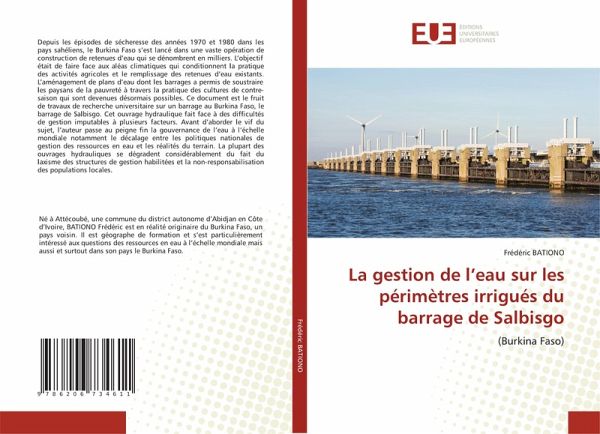 Depuis les épisodes de sécheresse des années 1970 et 1980 dans les pays sahéliens, le Burkina Faso s'est lancé dans une vaste opération de construction de retenues d'eau qui se dénombrent en milliers. L'objectif était de faire face aux aléas climatiques qui conditionnent la pratique des activités agricoles et le remplissage des retenues d'eau existants. L'aménagement de plans d'eau dont les barrages a permis de soustraire les paysans de la pauvreté à travers la pratique des cultures de contre-saison qui sont devenues désormais possibles. Ce document est le fruit de travaux de recherche universitaire sur un barrage au Burkina Faso, le barrage de Salbisgo. Cet ouvrage hydraulique fait face à des difficultés de gestion imputables à plusieurs facteurs. Avant d'aborder le vif du sujet, l'auteur passe au peigne fin la gouvernance de l'eau à l'échelle mondiale notamment le décalage entre les politiques nationales de gestion des ressources en eau et les réalités du terrain. La plupart des ouvrages hydrauliques se dégradent considérablement du fait du laxisme des structures de gestion habilitées et la non-responsabilisation des populations locales.