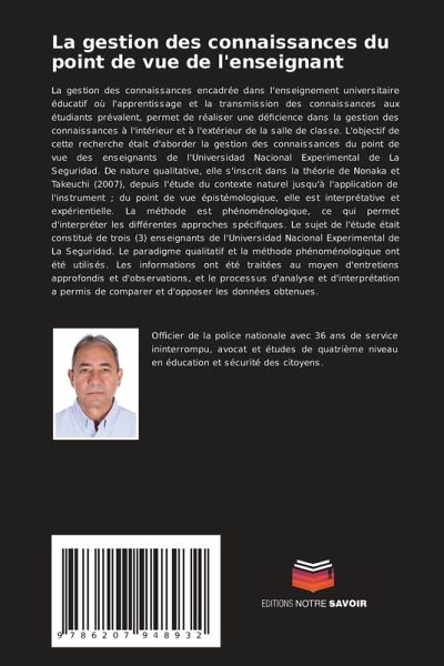 La gestion des connaissances encadrée dans l'enseignement universitaire éducatif où l'apprentissage et la transmission des connaissances aux étudiants prévalent, permet de réaliser une déficience dans la gestion des connaissances à l'intérieur et à l'extérieur de la salle de classe. L'objectif de cette recherche était d'aborder la gestion des connaissances du point de vue des enseignants de l'Universidad Nacional Experimental de La Seguridad. De nature qualitative, elle s'inscrit dans la théorie de Nonaka et Takeuchi (2007), depuis l'étude du contexte naturel jusqu'à l'application de l'instrument ; du point de vue épistémologique, elle est interprétative et expérientielle. La méthode est phénoménologique, ce qui permet d'interpréter les différentes approches spécifiques. Le sujet de l'étude était constitué de trois (3) enseignants de l'Universidad Nacional Experimental de La Seguridad. Le paradigme qualitatif et la méthode phénoménologique ont été utilisés. Les informations ont été traitées au moyen d'entretiens approfondis et d'observations, et le processus d'analyse et d'interprétation a permis de comparer et d'opposer les données obtenues.