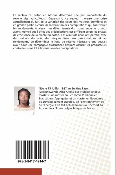 Le secteur du coton en Afrique détermine une part importante du revenu des agriculteurs. Cependant, ce secteur traverse une crise actuellement du fait de la variation des cours des matières premières et en grande partie à cause de la variation des précipitations qui font varier les rendements. Analysant les déterminants du risque rendement, nous avons montré que l'effet des précipitations est différent selon les phases de croissance de la plante du coton. Ces résultats nous ont permis, avec des calculs du coût des risques liées aux précipitations et au rendements, de déterminer le fond de réserve nécessaire que devrait avoir pour une compagnie d'assurance désirant assurer les producteurs contre le risque lié à la variation des précipitations.
