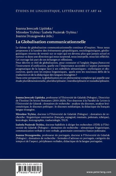 L'ouvrage fait part des échanges et réflexions sur le thème de globalisation communicationnelle. Son but est décrire ce réel de globalisation, vérifier si l'anglais lingua franca est l'instrument d'unification, voir quels sont les nouveaux défis de la traduction et de la didactique des langues étrangères.