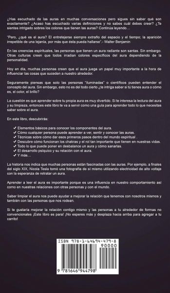 ¿Has escuchado de las auras en muchas conversaciones pero sigues sin saber qué son exactamente? ¿Acaso has escuchado varias definiciones y no sabes cuál debes creer? ¿Te sientes intrigado sobres los colores que tienen las auras? Continúa leyendo... "Pero, ¿qué es el aura? El entretejerse siempre extraño del espacio y el tiempo; la aparición irrepetible de una lejanía, por más que ésta pueda hallarse".- Walter Benjamin En las creencias espirituales, las personas que tienen un aura radiante son santas. Sin embargo. Otras culturas creen que todos irradian colores específicos del aura dependiendo de la personalidad. Hoy en día, muchas personas creen que el aura juega un papel muy importante a la hora de influenciar las cosas que suceden a nuestro alrededor. Seguramente piensas que solo las personas "iluminadas" o científicos pueden entender el concepto del aura. Sin embargo, esto no es del todo cierto ¿te intriga saber si tú tienes aura o cómo es, el color, el brillo? La cuestión es que aprender sobre tu propia aura es muy divertido. Si te interesa la lectura del aura y su limpieza, entonces este libro te va a servir como una guía para aprender todo lo que necesitas saber sobre el aura. En este libro, descubrirás: Elementos básicos para conocer los componentes del aura. Cómo cualquier persona puede aprender a ver, sentir y conocer las auras. Técnicas sobre cómo dar esos primeros pasos dentro del mundo espiritual . Descubre cómo funcionan los chakras y el rol tan importante que tienen en nuestras vidas. Todo lo que puede poner en desbalance un aura y cómo sanarlas. El desarrollo psíquico y su relación con el aura. Y más... La historia nos indica que muchas personas están fascinadas con las auras. Por ejemplo, a finales del siglo XIX, Nicola Tesla tomó una fotografía de sí mismo utilizando electricidad de alto voltaje con la esperanza de retratar un aura. Aprender a leer el aura es importante porque es una influencia en nuestro comportamiento así como en nuestras relaciones con otras personas y con el mundo. Saber limpiar el aura nos puede ayudar a mejorar la relación que tenemos con nosotros mismos y también con las personas que nos rodean. Si te gustaría mejorar la relación contigo mismo y las personas a tu alrededor de formas no convencionales ¡Este libro es para! ¡No esperes más y desplaza hacia arriba para agregar a tu carrito!