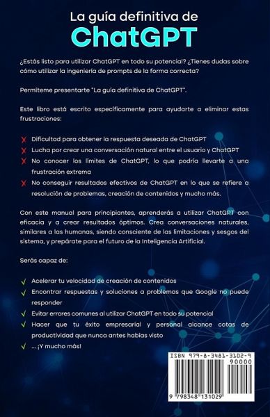 ¿Estás listo para llevar tu productividad a nuevas alturas con el poder de la inteligencia artificial? ¡No busques más, descubre "La guía definitiva de ChatGPT" de Percival C. Verena! En esta completa guía, adquirirás un profundo conocimiento de la ingeniería de prompts y de cómo aprovechar ChatGPT, el modelo de lenguaje de vanguardia desarrollado por OpenAI, para liberar todo tu potencial. Aprenderás a utilizar ChatGPT para potenciar tu creatividad, resolver problemas complejos y acelerar tu flujo de trabajo. Con explicaciones fáciles de seguir y ejemplos prácticos, "La guía definitiva de ChatGPT" es perfecta para cualquier persona, tanto si eres estudiante como investigador o profesional. Éstos son sólo algunos de los increíbles beneficios que obtendrás de este manual imprescindible: * Descubrirás los secretos de la ingeniería de prompts: Conociendo en profundidad los fundamentos de la ingeniería de prompts y la forma en que está configurando el futuro de la IA. * Aprenderás a crear prompts eficaces: Dominando el arte de crear prompts que generen los mejores resultados, permitiéndote liberar todo el potencial de ChatGPT. * Optimizarás tu flujo de trabajo: Integrando ChatGPT en tu flujo de trabajo, podrás aprovechar al máximo tus herramientas potenciadas por IA para agilizar tus procesos de trabajo. * Evitarás errores comunes: Gracias a los consejos de expertos sobre cómo evitar errores comunes al trabajar con ChatGPT, te asegurarás de sacar el máximo partido de esta potente herramienta. * Llevarás tus habilidades de IA al siguiente nivel: liberando todo el potencial de la IA podrás aplicar tus habilidades a cualquier campo, lo que te dará una ventaja competitiva en el vertiginoso mundo actual. No te pierdas esta oportunidad de convertirte en un maestro de la IA. "La guía definitiva de ChatGPT" es un recurso indispensable para cualquiera que desee aprovechar el poder de la inteligencia artificial para mejorar su productividad y alcanzar sus metas.