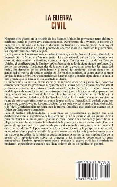 Aprenda sobre la Guerra más Mortífera en la Historia de los Estados Unidos Ninguna otra guerra en la historia de los Estados Unidos ha provocado tantos debates y conflictos como la guerra civil estadounidense. Durante más de 150 años, en la vida americana, la historia de la guerra civil ha sido una fuente de disputas, confusión e incluso desprecio. Aun hoy, el público estadounidense no puede ponerse de acuerdo sobre las causas de la guerra civil, sin importar sus lecciones o legado. En la guerra civil murieron más estadounidenses que en la Primera Guerra Mundial, la Segunda Guerra Mundial y Vietnam juntas. La guerra no solo enfrentó a estadounidenses entre sí, sino también a familias, vecinos, amigos. En algunas partes de los Estados Unidos, el conflicto entre la Unión y la Confederación todavía sigue siendo profundo. De hecho, las preguntas fundamentales de la guerra civil, preguntas sobre la (des) igualdad racial, los derechos de los ciudadanos y el papel del gobierno, siguen siendo en la actualidad el motivo de debates candentes. En muchos sentidos, la guerra que se cobrara la vida de más de 600.000 estadounidenses hace un siglo y medio sigue siendo la batalla más grande que se librara en suelo estadounidense. En La Guerra Civil: Una Guía Fascinante sobre la Guerra Civil Americana y Su Impacto en la Historia de los Estados Unidos, descubrirá temas tales como:Una Nación Tensa Se Agrietan los Cimientos El Primer Disparo Bienvenida a la Guerra Días Sangrientos Proclamando la Libertad La Guerra se Ve Sombría Cambiando el Rumbo La Lucha Final Reunificada La América de la Posguerra ¡Y mucho, mucho más! ¡Obtenga este libro ahora para aprender más sobre la guerra civil!