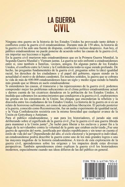 Aprenda sobre la Guerra más Mortífera en la Historia de los Estados Unidos Ninguna otra guerra en la historia de los Estados Unidos ha provocado tantos debates y conflictos como la guerra civil estadounidense. Durante más de 150 años, en la vida americana, la historia de la guerra civil ha sido una fuente de disputas, confusión e incluso desprecio. Aun hoy, el público estadounidense no puede ponerse de acuerdo sobre las causas de la guerra civil, sin importar sus lecciones o legado. En la guerra civil murieron más estadounidenses que en la Primera Guerra Mundial, la Segunda Guerra Mundial y Vietnam juntas. La guerra no solo enfrentó a estadounidenses entre sí, sino también a familias, vecinos, amigos. En algunas partes de los Estados Unidos, el conflicto entre la Unión y la Confederación todavía sigue siendo profundo. De hecho, las preguntas fundamentales de la guerra civil, preguntas sobre la (des) igualdad racial, los derechos de los ciudadanos y el papel del gobierno, siguen siendo en la actualidad el motivo de debates candentes. En muchos sentidos, la guerra que se cobrara la vida de más de 600.000 estadounidenses hace un siglo y medio sigue siendo la batalla más grande que se librara en suelo estadounidense. En La Guerra Civil: Una Guía Fascinante sobre la Guerra Civil Americana y Su Impacto en la Historia de los Estados Unidos, descubrirá temas tales como:Una Nación Tensa Se Agrietan los Cimientos El Primer Disparo Bienvenida a la Guerra Días Sangrientos Proclamando la Libertad La Guerra se Ve Sombría Cambiando el Rumbo La Lucha Final Reunificada La América de la Posguerra ¡Y mucho, mucho más! ¡Obtenga este libro ahora para aprender más sobre la guerra civil!