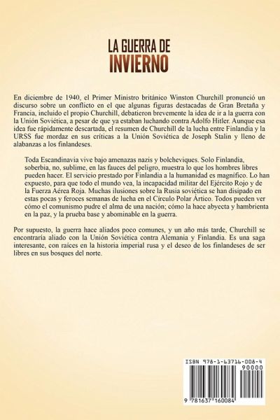 Si desea descubrir la fascinante historia de la guerra de invierno entonces continúe leyendo... En diciembre de 1940, el primer ministro británico Winston Churchill pronunció un discurso sobre un conflicto en el que algunas figuras destacadas de Gran Bretaña y Francia, incluido el propio Churchill, debatieron brevemente la idea de ir a la guerra con la Unión Soviética, a pesar de que ya estaban luchando contra Adolf Hitler. Por supuesto, la guerra hace aliados poco comunes, y un año más tarde, Churchill se encontraría aliado con la Unión Soviética contra Alemania y Finlandia. Es una saga interesante, con raíces en la historia imperial rusa y el deseo de los finlandeses de ser libres en sus bosques del norte. En La Guerra de Invierno: Una guía fascinante de la guerra ruso-finlandesa entre Finlandia y la Unión Soviética, descubrirá temas como:El gran ducado de Finlandia La guerra civil finlandesa Entre la espada y la pared La Amenaza Roja La Amenaza Roja Las negociaciones, el "entrenamiento de actualización" y el equilibrio de fuerzas El más grande finlandés de todos los tiempos El infierno en la nieve ¡Y mucho, mucho más! ¡Obtenga este libro ahora para aprender más sobre la guerra de invierno!