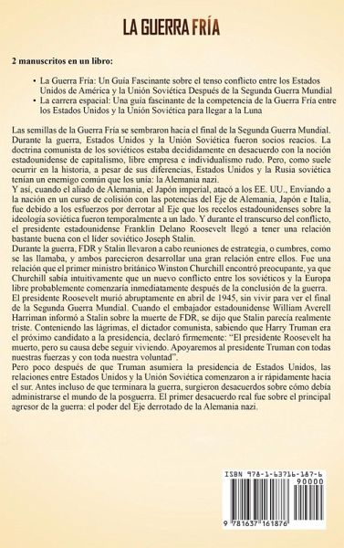 2 manuscritos completos en 1 libroLa Guerra Fría: Un Guía Fascinante sobre el tenso conflicto entre los Estados Unidos de América y la Unión Soviética Después de la Segunda Guerra Mundial La carrera espacial: Una guía fascinante de la competencia de la Guerra Fría entre los Estados Unidos y la Unión Soviética para llegar a la Luna Las semillas de la Guerra Fría se sembraron hacia el final de la Segunda Guerra Mundial. Durante la guerra, Estados Unidos y la Unión Soviética fueron socios renuentes. La doctrina comunista de los soviéticos estaba decididamente en desacuerdo con la noción estadounidense del capitalismo, la libre empresa y el individualismo rudo. Pero, como suele ocurrir en la historia, a pesar de sus diferencias, Estados Unidos y la Rusia soviética tenían un enemigo común que los unía: la Alemania nazi. Pero poco después de que Truman asumiera la presidencia de Estados Unidos, las relaciones entre Estados Unidos y la Unión Soviética comenzaron a dirigirse rápidamente hacia el sur. Incluso antes de que terminara la guerra, surgieron desacuerdos sobre cómo se debía administrar el mundo de la posguerra. La primera parte de este libro incluye:Berlín: Se Han Trazado las Líneas Detener la marea del comunismo en el este de Asia La lucha contra los soviéticos por la Supremacía en el espacio Cómo el cálculo de la Guerra Fría afectó al Medio Oriente Cuba, Vietnam y el creciente malestar social Una guerra fría en África oriental Secretos de la Guerra Fría y un lugar llamado Área 51 Soviets, Afganistán y un poco de SAL Ronald Reagan y el Imperio del mal Polonia, un Papa polaco y Solidaridad en la Guerra Fría La Guerra de las Galaxias: El mayor engaño de la historia La Guerra Fría llega a su fin ¡Y mucho, mucho más! Segunda parte de este libro, usted:El fin de la Segunda Guerra Mundial, el destino de los científicos alemanes y el futuro de un modesto ucraniano Un breve resumen de la rivalidad de la Guerra Fría Un gran anuncio: Ambas naciones prometen lanzar satélites La URSS y EE. UU. preparan sus satélites y sus sitios Los rusos logran varias primicias con el Sputnik 1, 2 y 3 Los americanos apuntan a ponerse al día Diferentes enfoques para conseguir que los primeros hombres en el espacio Los primeros hombres en el espacio Resolución y predicción de JFK de la victoria final: Llegar a la Luna Los tres programas primarios de la NASA Los primeros paseos espaciales El primer acoplamiento exitoso de una nave espacial Apolo 11: Un pequeño paso para el hombre Aquellos que dieron sus vidas El largo y accidentado camino hacia la coordinación ¡Y mucho, mucho más! ¡Adquiera este libro ahora para aprender más sobre la Guerra Fría y la carrera espacial!