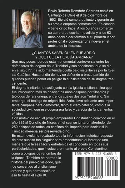 ¿Cuántos saben quién fue Arrio y qué fue la Herejía Arriana? Son muy pocos, porque esta monumental controversia entre los defensores del dogma de la Trinidad y sus opositores, que se dio en el siglo IV, ha sido mantenida oculta bajo siete llaves por la Iglesia Católica. Hasta el día de hoy se defiende a brazo partido de quienes puedan poner en peligro la subsistencia de su dogma trascendente. El dogma trinitario no nació junto con la iglesia cristiana, sino que fue introducido más de doscientos años después por filósofos y teólogos de raíz griega, entre los cuales destacó Tertuliano. Sin embargo, el teólogo de origen libio, Arrio, llevó adelante una importante campaña para demostrar, tanto al clero católico, como a la sociedad civil, que ese dogma era falso y carecía de fundamentos válidos. Con motivo de ello, el propio emperador Constantino convocó en el año 325 al Concilio de Nicea, en el cual se juntaron alrededor de 250 obispos de todos los confines del imperio para decidir si la Trinidad merecía ser preservada o no. En esta novela he recabado toda la información histórica respecto de este suceso tan singular para presentárselo al lector de una manera que le sea fácil y entretenida el conocerlo en todas sus particularidades, que involucraron, tanto al propio Constantino, como a obispos de renombre de la época. También he narrado la historia del pueblo visigodo, que fue convertido al cristianismo arriano y que permaneció en esa fe hasta el siglo IX.