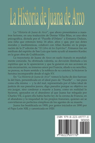 La "Historia de Juana de Arco", que ahora presentamos a nuestros lectores, en una traducción de Denise Villas Bôas, es una obra psicográfica, dictada por el "Pucelle d'Orlans" a Ermance Dufaux, una niña que entonces tenía 14 años. años y que, por sus dotes morales y mediúmnicas, colaboró con Allan Kardec en la preparación de la 2ª edición de "El Libro de los Espíritus", Ermance fue un médium del espíritu de San Luis que tanto ayudó al maestro Kardec en la gran obra de Codificación. La trayectoria de Juana de Arco en suelo francés es mundialmente conocida. Su obstinada valentía, su devoción ilimitada a los espíritus que se le aparecieron y que la guiaron en sus acciones en esta encarnación, su inmenso amor por Francia, aliado a su sencillez, su pureza, su buen sentido y la nobleza de su carácter, la hicieron la heroína incomparable desde el siglo XV. En "La Historia de Juana de Arco" vemos la lucha de dos fuerzas: la del bien, personificada en el ideal puro de "Pucelle" — tan pura como ella misma — y la del mal, representada por el falso ideal de justicia de sus pseudos jueces, digo pseudos porque su objetivo no era juzgar, sino condenar a muerte a Juana, como en realidad lo hicieron, apoyados en el abandono al que Juana fue relegada por Charles VII, a quien ella había hecho ley de la corona de Francia, en el abandono y la iniquidad de los propios franceses, quienes así se convirtieron en perfectos cómplices de los agentes de su muerte. Juana fue beatificada en 1909, por gestos iniciados en 1890 por el Papa León XIII, y canonizada en 1920.