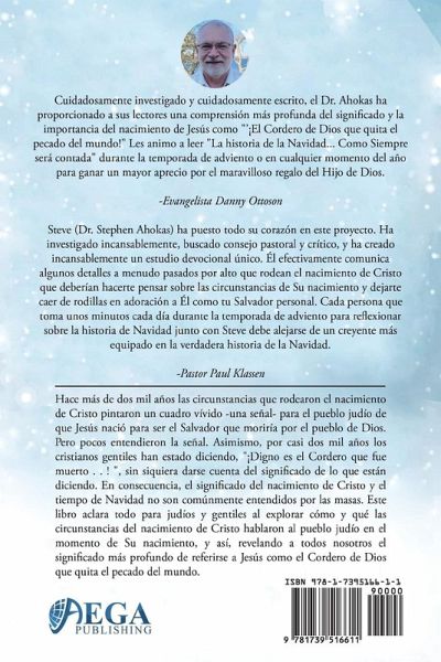 Cuidadosamente investigado y cuidadosamente escrito, el Dr. Ahokas ha proporcionado a sus lectores una comprensión más profunda del significado y la importancia del nacimiento de Jesús como "'¡El Cordero de Dios que quita el pecado del mundo!" Les animo a leer "La historia de la Navidad... Como Siempre será contada" durante la temporada de adviento o en cualquier momento del año para ganar un mayor aprecio por el maravilloso regalo del Hijo de Dios. ¿ - Evangelista Danny Ottoson Steve (Dr. Stephen Ahokas) ha puesto todo su corazón en este proyecto. Ha investigado incansablemente, buscado consejo pastoral y crítico, y ha creado incansablemente un estudio devocional único. Él efectivamente comunica algunos detalles a menudo pasados por alto que rodean el nacimiento de Cristo que deberían hacerte pensar sobre las circunstancias de Su nacimiento y dejarte caer de rodillas en adoración a Él como tu Salvador personal. Cada persona que toma unos minutos cada día durante la temporada de adviento para reflexionar sobre la historia de Navidad junto con Steve debe alejarse de un creyente más equipado en la verdadera historia de la Navidad. -Pastor Paul Klassen Hace más de dos mil años las circunstancias que rodearon el nacimiento de Cristo pintaron un cuadro vívido -una señal- para el pueblo judío de que Jesús nació para ser el Salvador que moriría por el pueblo de Dios. Pero pocos entendieron la señal. Asimismo, por casi dos mil años los cristianos gentiles han estado diciendo, "¡Digno es el CORDERO que fue muerto . . ! ", sin siquiera darse cuenta del significado de lo que están diciendo. En consecuencia, el significado del nacimiento de Cristo y el tiempo de Navidad no son comúnmente entendidos por las masas. Este libro aclara todo para judíos y gentiles al explorar cómo y qué las circunstancias del nacimiento de Cristo hablaron al pueblo judío en el momento de Su nacimiento, y así, revelando a todos nosotros el significado más profundo de referirse a Jesús como el Cordero de Dios que quita el pecado del mundo.