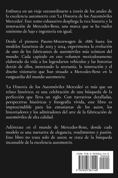 Embarca en un viaje extraordinario a través de los anales de la excelencia automotriz con 'La Historia de los Automóviles Mercedes'. Este tomo exhaustivo despliega la rica historia y la innovación de Mercedes-Benz, una marca que se ha vuelto sinónimo de lujo e ingeniería sin igual. Desde el pionero Patent-Motorwagen de 1886 hasta los modelos futuristas de 2023 y 2024, experimenta la evolución de uno de los fabricantes de automóviles más icónicos del mundo. Cada capítulo en este volumen meticulosamente elaborado da vida a los legendarios vehículos y las historias detrás de ellos, mostrando la artesanía, la innovación y el diseño visionario que han situado a Mercedes-Benz en la vanguardia del mundo automotriz. 'La Historia de los Automóviles Mercedes' es más que un relato histórico; es una celebración de una búsqueda de la perfección que lleva un siglo. Con narrativas detalladas, perspectivas históricas y fotografía vívida, este libro es imprescindible para los entusiastas de los autos, los historiadores y los admiradores del arte de la fabricación de automóviles de alta calidad. Adéntrate en el mundo de Mercedes-Benz, donde cada modelo es una narrativa de elegancia, rendimiento y pasión. Este libro no trata solo de autos; se trata de la búsqueda incansable de la excelencia automotriz.