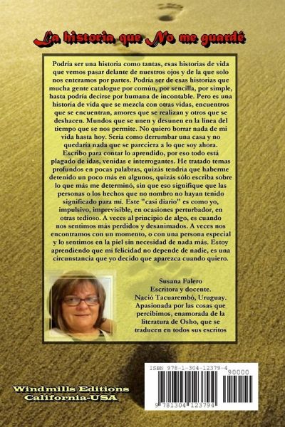 Podría ser una historia como tantas, esas historias de vida que vemos pasar delante de nuestros ojos y de la que solo nos enteramos por partes. Podría ser de esas historias que mucha gente catalogue por común, por sencilla, por simple, hasta podría decirse por humana de incontable. Pero es una historia de vida que se mezcla con otras vidas, encuentros que se encuentran, amores que se realizan y otros que se deshacen. Mundos que se unen y desunen en la línea del tiempo que se nos permite. No quiero borrar nada de mi vida hasta hoy. Sería como derrumbar una casa y no quedaría nada que se pareciera a lo que soy ahora. Escribo para contar lo aprendido, por eso todo está plagado de idas, venidas e interrogantes. He tratado temas profundos en pocas palabras, quizás tendría que haberme detenido un poco más en algunos, quizás sólo escriba sobre lo que más me determinó, sin que eso signifique que las personas o los hechos que no nombro no hayan tenido significado para mí.