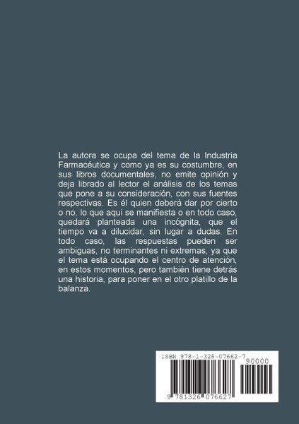 Es un libro documental sobre la Industria farmacéutica, tan cuestionada hoy, por muchas personas relacionadas con ella de alguna manera. Sin dudas que la balanza puede inclinarse a favor o en contra, pero es un tema que debemos tratar.