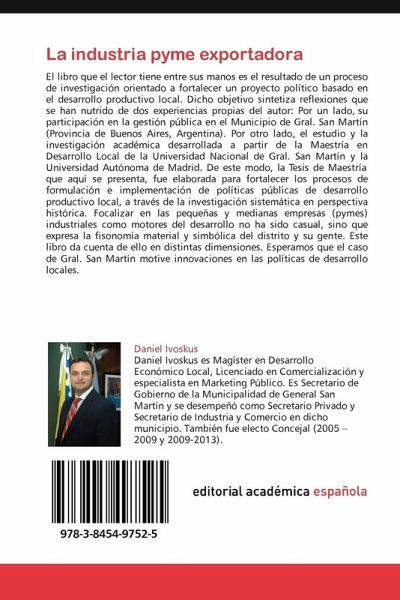 El libro que el lector tiene entre sus manos es el resultado de un proceso de investigación orientado a fortalecer un proyecto político basado en el desarrollo productivo local. Dicho objetivo sintetiza reflexiones que se han nutrido de dos experiencias propias del autor: Por un lado, su participación en la gestión pública en el Municipio de Gral. San Martín (Provincia de Buenos Aires, Argentina). Por otro lado, el estudio y la investigación académica desarrollada a partir de la Maestría en Desarrollo Local de la Universidad Nacional de Gral. San Martín y la Universidad Autónoma de Madrid. De este modo, la Tesis de Maestría que aquí se presenta, fue elaborada para fortalecer los procesos de formulación e implementación de políticas públicas de desarrollo productivo local, a través de la investigación sistemática en perspectiva histórica. Focalizar en las pequeñas y medianas empresas (pymes) industriales como motores del desarrollo no ha sido casual, sino que expresa la fisonomía material y simbólica del distrito y su gente. Este libro da cuenta de ello en distintas dimensiones. Esperamos que el caso de Gral. San Martín motive innovaciones en las políticas de desarrollo locales.