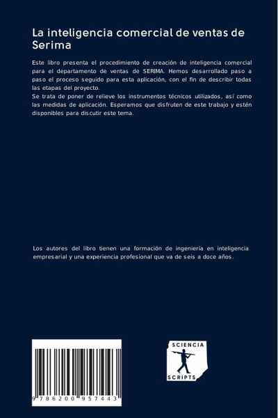 Este libro presenta el procedimiento de creación de inteligencia comercial para el departamento de ventas de SERIMA. Hemos desarrollado paso a paso el proceso seguido para esta aplicación, con el fin de describir todas las etapas del proyecto.Se trata de poner de relieve los instrumentos técnicos utilizados, así como las medidas de aplicación. Esperamos que disfruten de este trabajo y estén disponibles para discutir este tema.