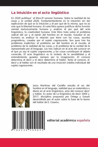 En 2020 publique¿ el libro El conocer humano. Sobre la realidad de las cosas y la verdad 2020, fundamentándome en la intuición sin dar explicación de qué es la intuición y el por qué de la misma, que no es más que la libertad humana. En este libro quiero justificar dicha función mental exclusivamente humana y analizar el por qué del acto lingüístico, la creatividad humana. Este libro trata sobre el problema radical del ser y el existir del hombre en el mundo. Estudiar el ser humano es analizar la relación que tiene con las cosas, asuntos pragmáticos, creados por el sujeto cognoscente. Son pues tres los problemas implícitos: el problema ser del hombre en el mundo, el problema de la realidad de las cosas, y el problema de la verdad de lo representado por el lenguaje. Los tres radican en el acto del conocer en el que yo soy el sujeto cognoscente, y las cosas constituyen el objeto conocido. El acto lingüístico es la síntesis de la sensibilidad y el entendimiento guiados siempre por la imaginación. El conocer determina el decir y el decir determina al hablar. Tanto el conocer, el decir y el hablar son el resultado de una intuición inédita individual del sujeto cognoscente.