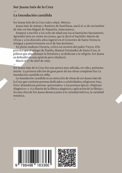 Sor Juana Inés de la Cruz fue una autora muy editada, en vida y póstumamente. La primera edición de gran parte de sus obras completas fue La Inundación castálida en 1689. La Inundación castálida es un selección de obras de sor Juana Inés de la Cruz que contiene poemas dedicados a celebridades; religiosos; loas, lírico-dramáticas; poemas personales y los poemas épicos Neptuno Alegórico y La Razón de la fábrica alegórica y aplicación de la fábula. En esta obra de Sor Juana destaca junto a la variedad métrica, la variedad temática.