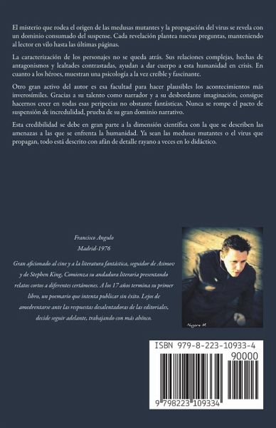 El misterio que rodea el origen de las medusas mutantes y la propagación del virus se revela con un dominio consumado del suspense. Cada revelación plantea nuevas preguntas, manteniendo al lector en vilo hasta las últimas páginas. La caracterización de los personajes no se queda atrás. Sus relaciones complejas, hechas de antagonismos y lealtades contrastadas, ayudan a dar cuerpo a esta humanidad en crisis. En cuanto a los héroes, muestran una psicología a la vez creíble y fascinante. Otro gran activo del autor es esa facultad para hacer plausibles los acontecimientos más inverosímiles. Gracias a su talento como narrador y a su desbordante imaginación, consigue hacernos creer en todas esas peripecias no obstante fantásticas. Nunca se rompe el pacto de suspensión de incredulidad, prueba de su gran dominio narrativo. Esta credibilidad se debe en gran parte a la dimensión científica con la que se describen las amenazas a las que se enfrenta la humanidad. Ya sean las medusas mutantes o el virus que propagan, todo está descrito con afán de detalle rayano a veces en lo didáctico. Este anclaje científico acerca la novela al género de anticipación especulativa tan caro a un Frank Herbert (Ciclo de Dune) o Arthur C. Clarke (2001: Una odisea del espacio). Pero a diferencia de estos autores, Francisco Angulo nunca cae en un optimismo tecnófilo bobalicón. Su escepticismo lúcido confiere a la obra un tono más sombrío y angustioso. Para lograr sus fines, el autor demuestra una erudición impresionante en diversos campos como la biología marina, la virología o la ingeniería aeronáutica. Domina todas estas disciplinas con pasmosa soltura, sin caer nunca en el exceso de erudición gratuita. De hecho, ahí radica todo el talento del autor: hacer fascinante y creíble lo inverosímil. El lector se deja llevar con gusto por los vericuetos de estas anticipaciones científicas, por descabelladas que sean. Sellado este pacto de lectura, nada puede ya romper el encanto de esta epopeya futurista. Porque la otra gran fuerza de esta novela es mezclar con destreza relato de aventuras trepidante y cuestionamiento filosófico. La trama nunca se enreda en fastidiosas digresiones, cada escena haciendo avanzar la acción de manera significativa. Pero detrás de estas peripecias palpitantes asoma una reflexión inquietante sobre el devenir de nuestro mundo. Más allá del mero relato catastrofista, el autor explora con sutileza la psique humana frente al derrumbe de sus referentes. Esta fineza psicológica añade una profundidad fascinante a lo que podría haber sido un simple relato postapocalíptico. Porque en esta lucha desesperada frente a la adversidad, se revelan los recovecos del alma humana, en lo más oscuro y en lo más luminoso. Detrás de cada personaje trasluce una parte de nuestra humanidad, con sus grandezas y sus bajezas. Así, es imposible permanecer impasible ante el destino de estos náufragos de un mundo en perdición. Gracias a su dimensión a la vez cerebral y visceral, la novela logra conjurar el espectro del aburrimiento, escollo fatal para cualquier relato de anticipación. El lector sale de cada capítulo aturdido pero fascinado, pendiente del hilo de esta odisea futurista.