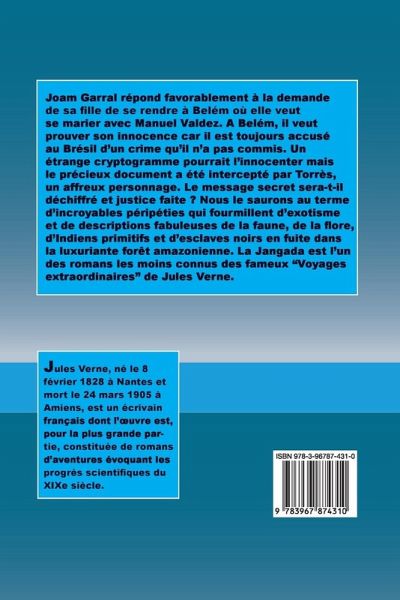 Joam Garral répond favorablement à la demande de sa fille de se rendre à Belém où elle veut se marier avec Manuel Valdez. A Belém, il veut prouver son innocence car il est toujours accusé au Brésil d’un crime qu’il n’a pas commis. Un étrange cryptogramme pourrait l’innocenter mais le précieux document a été intercepté par Torrès, un affreux personnage. Le message secret sera-t-il déchiffré et justice faite ? Nous le saurons au terme d’incroyables péripéties qui fourmillent d’exotisme et de descriptions fabuleuses de la faune, de la flore, d’Indiens primitifs et d’esclaves noirs en fuite dans la luxuriante forêt amazonienne. La Jangada est l’un des romans les moins connus des fameux "Voyages extraordinaires" de Jules Verne.
