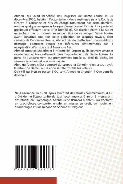 Ahmed, qui avait bénéficié des largesses de Dame Louise le 26 décembre 2020, habitant l'appartement de sa maîtresse sis à la Route de Genève à Lausanne et pris en charge totalement par cette dernière, rumine quelque vengeance lorsque Dame Louise l'a mis à la porte ad proximum effectum (avec effet immédiat). Ce dernier, étant à la rue et ne sachant pas ou dormir, se mit en tête de se venger. Dame Louise ayant constitué une fort belle collection de sceptres royaux, dont certains de l'ancienne Russie, Ahmed décide d'effectuer une expédition nocturne, comptant venger ses infortunes sentimentales par la récupération d'un sceptre d'Alexandre 1er. Ahmed contacte Shpetim et l'informe de l'argent qu'ils peuvent amasser rapidement et tranquillement dans l'appartement de Dame Louise. La porte de l'appartement est promptement forcée au pied de biche, les serrures arrachées et une vitre cassée.Alors qu'Ahmed s'était emparé du sceptre et Sphetim d'un sceau royal, le retour de Dame Louise et de sa fille trouble les voleurs...Qu'a-t-il pu bien se passer ? Ou sont Ahmed et Shpetim ? Que vont-ils devenir ?