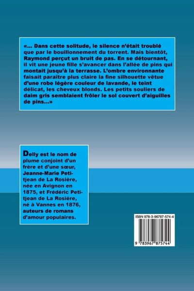... Dans cette solitude, le silence n'était troublé que par le bouillonnement du torrent. Mais bientôt, Raymond perçut un bruit de pas. En se détournant, il vit une jeune fille s'avancer dans l'allée de pins qui montait jusqu'à la terrasse. L'ombre environnante faisait paraître plus claire la fine silhouette vêtue d'une robe légère couleur de lavande, le teint délicat, les cheveux blonds. Les petits souliers de daim gris semblaient frôler le sol couvert d'aiguilles de pins...