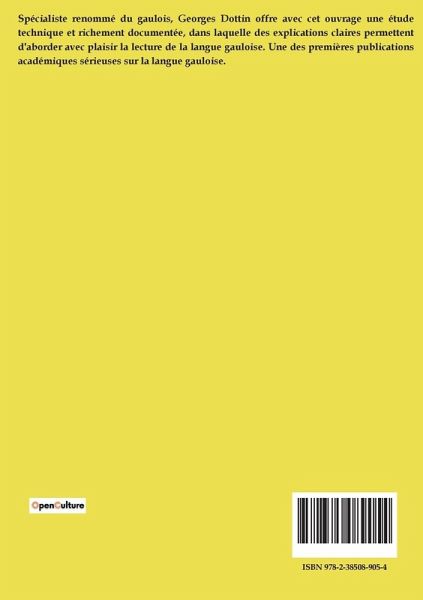 Spécialiste renommé du gaulois, Georges Dottin offre avec cet ouvrage une étude technique et richement documentée, dans laquelle des explications claires permettent d'aborder avec plaisir la lecture de la langue gauloise. Une des premières publications académiques sérieuses sur la langue gauloise.