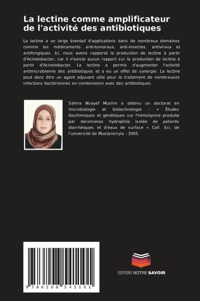 La lectine a un large éventail d'applications dans de nombreux domaines comme les médicaments anti-tumoraux, anti-insectes, antiviraux et antifongiques. Ici, nous avons rapporté la production de lectine à partir d'Acinetobacter, car il n'existe aucun rapport sur la production de lectine à partir d'Acinetobacter. La lectine a permis d'augmenter l'activité antimicrobienne des antibiotiques et a eu un effet de synergie. La lectine peut donc être un agent adjuvant utile pour le traitement de nombreuses infections bactériennes en combinaison avec des antibiotiques.
