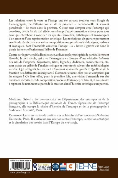 Ce livre est le premier ouvrage scientifique qui étudie la place des mots, leurs formes et leurs fonctions dans l'histoire de la gravure européenne. Centré sur l'estampe du XVIe siècle, il nous invite à repenser, sous de nombreux aspects, les relations entre le texte et l'image dans la tradition artistique occidentale.