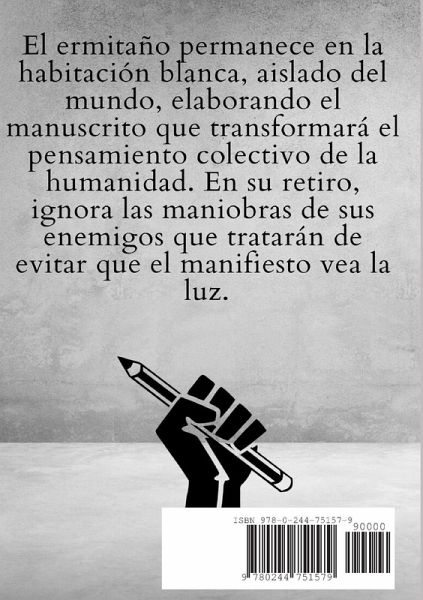 EL FUTURO DE LA HUMANIDAD se tambalea antes las palabras que amanan de del manuscrito.LA NUEVA ERA HA COMENZADO. El ermitaño permanece en un lugar inhóspito, inaccesible, aislado del mundo, elaborando el manuscrito que transformará el pensamiento colectivo de la humanidad. En su retiro, ignora las maniobras de sus enemigos que tratarán de evitar que el manifiesto vea la luz. Una thriller de intriga y misterio ambientado en un futuro utópico no muy lejano.