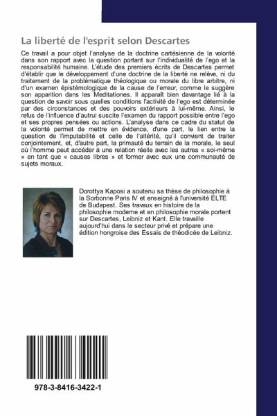Ce travail a pour objet l'analyse de la doctrine cartésienne de la volonté dans son rapport avec la question portant sur l'individualité de l'ego et la responsabilité humaine. L'étude des premiers écrits de Descartes permet d'établir que le développement d'une doctrine de la liberté ne relève, ni du traitement de la problématique théologique ou morale du libre arbitre, ni d'un examen épistémologique de la cause de l'erreur, comme le suggère son apparition dans les Meditationes. Il apparaît bien davantage lié à la question de savoir sous quelles conditions l'activité de l'ego est déterminée par des circonstances et des pouvoirs extérieurs à lui-même. Ainsi, le refus de l'influence d'autrui suscite l'examen du rapport possible entre l'ego et ses propres pensées ou actions. L'analyse dans ce cadre du statut de la volonté permet de mettre en évidence, d'une part, le lien entre la question de l'imputabilité et celle de l'altérité, qu'il convient de traiter conjointement, et, d'autre part, la primauté du terrain de la morale, le seul où l'homme peut accéder à une relation réelle avec les autres " soi-même " en tant que " causes libres " et former avec eux une communauté de sujets moraux.