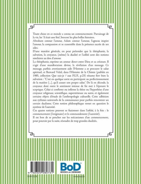 D'une manière générale, on peut prétendre que la théophanie, la salvation, la croyance, (même) la dualité et l'arkhé sont des notions similaires au don d'amour.