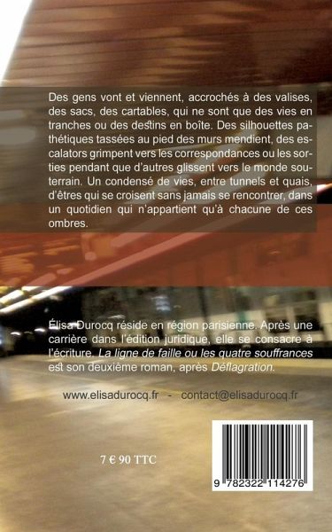 Des gens vont et viennent, accrochés à des valises, des sacs, des cartables, qui ne sont que des vies en tranches ou des destins en boîte. Des silhouettes pathétiques tassées au pied des murs mendient, des escalators grimpent vers les correspondances ou les sorties pendant que d'autres glissent vers le monde souterrain. Un condensé de vies, entre tunnels et quais, d'êtres qui se croisent sans jamais se rencontrer, dans un quotidien qui n'appartient qu'à chacune de ces ombres.