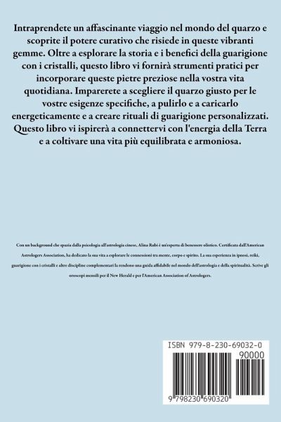 Intraprendete un affascinante viaggio nel mondo del quarzo e scoprite il potere curativo che risiede in queste vibranti gemme. Oltre a esplorare la storia e i benefici della guarigione con i cristalli, questo libro vi fornirà strumenti pratici per incorporare queste pietre preziose nella vostra vita quotidiana. Imparerete a scegliere il quarzo giusto per le vostre esigenze specifiche, a pulirlo e a caricarlo energeticamente e a creare rituali di guarigione personalizzati. Questo libro vi ispirerà a connettervi con l'energia della Terra e a coltivare una vita più equilibrata e armoniosa.