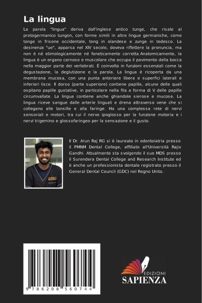 La parola "lingua" deriva dall'inglese antico tunge, che risale al protogermanico tungon, con forme simili in altre lingue germaniche, come tonge in frisone occidentale, tong in olandese e zunge in tedesco. La desinenza "ue", apparsa nel XIV secolo, doveva riflettere la pronuncia, ma non è né etimologicamente né foneticamente corretta.Anatomicamente, la lingua è un organo carnoso e muscolare che occupa il pavimento della bocca nella maggior parte dei vertebrati. È coinvolta in funzioni essenziali come la degustazione, la deglutizione e la parola. La lingua è ricoperta da una membrana mucosa, con una punta anteriore libera e superfici laterali e inferiori lisce. Il dorso (parte superiore) contiene papille, alcune delle quali ospitano papille gustative, in particolare nella fila a forma di V delle papille circumvallate. La lingua contiene anche ghiandole sierose e mucose. La lingua riceve sangue dalle arterie linguali e drena attraverso vene che si collegano alle tonsille e alla faringe. Ha una complessa rete di nervi sensoriali e motori, tra cui il nervo ipoglosso per la funzione motoria e i nervi trigemino e glossofaringeo per la sensazione e il gusto.
