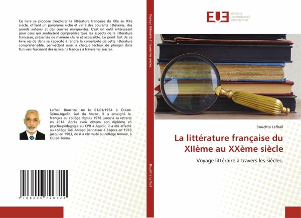 Ce livre se propose d'explorer la littérature française du XIIe au XXe siècle, offrant un panorama riche et varié des courants littéraires, des grands auteurs et des oeuvres marquantes. C'est un outil intéressant pour ceux qui souhaitent comprendre tous les aspects de la littérature française, présentés de manière claire et accessible. Le point fort de ce livre réside dans sa capacité à rendre la complexité de cette littérature compréhensible, permettant ainsi à chaque lecteur de plonger dans l'univers fascinant des écrivains français à travers les siècles.