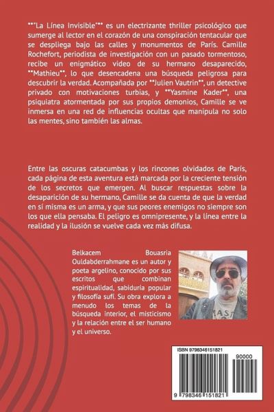 **"La Línea Invisible"** es un electrizante thriller psicológico que sumerge al lector en el corazón de una conspiración tentacular que se despliega bajo las calles y monumentos de París. Camille Rochefort, periodista de investigación con un pasado tormentoso, recibe un enigmático video de su hermano desaparecido, **Mathieu**, lo que desencadena una búsqueda peligrosa para descubrir la verdad. Acompañada por **Julien Vautrin**, un detective privado con motivaciones turbias, y **Yasmine Kader**, una psiquiatra atormentada por sus propios demonios, Camille se ve inmersa en una red de influencias ocultas que manipula no solo las mentes, sino también las almas. Entre las oscuras catacumbas y los rincones olvidados de París, cada página de esta aventura está marcada por la creciente tensión de los secretos que emergen. Al buscar respuestas sobre la desaparición de su hermano, Camille se da cuenta de que la verdad en sí misma es un arma, y que sus peores enemigos no siempre son los que ella pensaba. El peligro es omnipresente, y la línea entre la realidad y la ilusión se vuelve cada vez más difusa. ¿Hasta dónde está dispuesta a llegar Camille para revelar los misterios de **La Línea Invisible**? ¿Y qué está dispuesta a sacrificar por una verdad que quizás el mundo nunca debería conocer? --- **Sumergido en una atmósfera opresiva y cautivadora**, **"La Línea Invisible"** explora las profundidades del alma humana, los juegos de poder psicológico, y la delgada línea entre la verdad y la manipulación. Con personajes ricos, giros impactantes, y revelaciones que cuestionan toda la realidad percibida, esta novela te mantendrá en vilo hasta la última página. **París** se convierte tanto en escenario como en un laberinto de enigmas, donde cada calle, cada monumento esconde una verdad más oscura que la anterior. **Un libro imposible de soltar, que te hará reflexionar mucho después de haberlo terminado.**