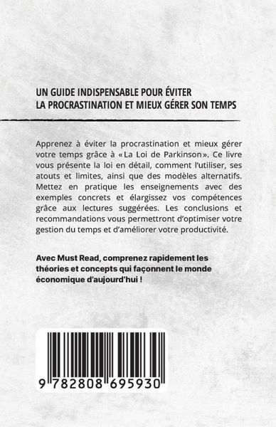Apprenez à éviter la procrastination et mieux gérer votre temps grâce à "La Loi de Parkinson". Ce livre vous présente la loi en détail, comment l'utiliser, ses atouts et limites, ainsi que des modèles alternatifs. Mettez en pratique les enseignements avec des exemples concrets et élargissez vos compétences grâce aux lectures suggérées. Les conclusions et recommandations vous permettront d'optimiser votre gestion du temps et d'améliorer votre productivité.
