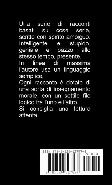 Una serie di racconti basati su cose serie, scritto con spirito ambiguo. Intelligente e stupido, geniale e pazzo allo stesso tempo, presente. In linea di massima l'autore usa un linguaggio semplice, ogni racconto è dotato di una sorta di insegnamento morale, con un sottile filo logico tra l'uno e l'altro. Si consiglia una lettura attenta.