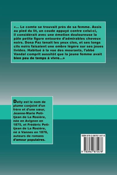 ... Le comte se trouvait près de sa femme. Assis au pied du lit, un coude appuyé contre celui-ci, il considérait avec une émotion douloureuse la pâle petite figure entourée d'admirables cheveux noirs. Dona Paz tenait les yeux clos, et ses longs cils noirs faisaient une ombre légère sur ses joues livides. Habitué à la vue des mourants, l'abbé Vandal comprit aussitôt que la jeune femme avait bien peu de temps à vivre...