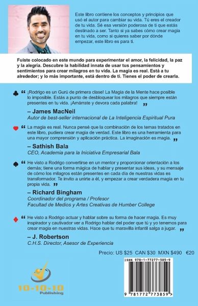 Fuiste colocado en este mundo para experimentar el amor, la felicidad, la paz y la alegría. Descubre la habilidad innata de usar tus pensamientos y sentimientos para crear milagros en tu vida. La magia es real. Está a tu alrededor; y lo más importante, está dentro de ti. Tienes el poder de crearla. Este libro contiene los conceptos y principios que usó el autor para cambiar su vida. Tú eres el creador de tu vida. Sé esa versión poderosa de ti que estás destinado a ser. Tanto si ya sabes cómo crear magia en tu vida, como si quieres saber por dónde empezar, este libro es para ti.